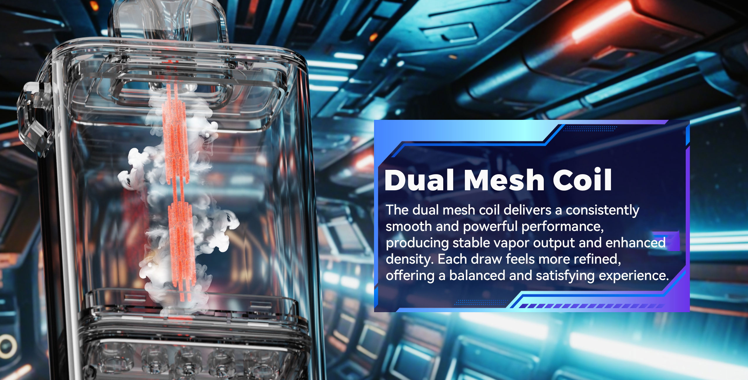 • Dual Mesh Coil – gleichmäßige Dampfentwicklung & dichte Wolken